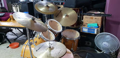 작곡가 현정만 사무실 에서는 아코디언 전자올겐 드럼 색소폰 등 작사 작곡 음반 취입